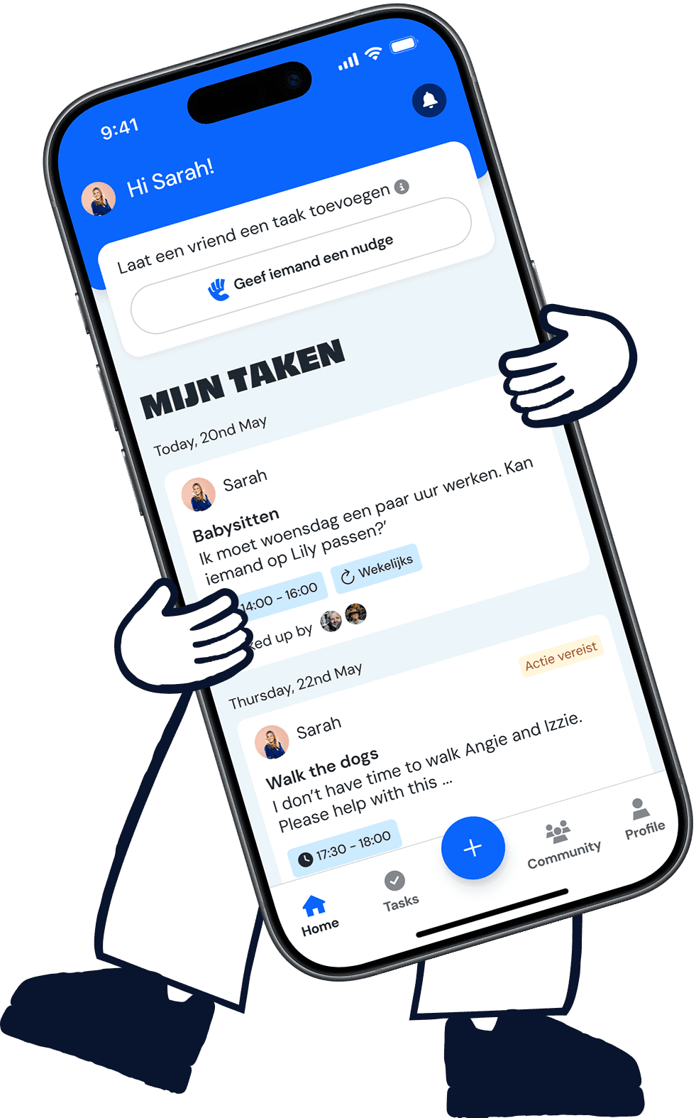 Download de We4U app nu en begin direct met het delen en oppakken van taken. Nodig familie, vrienden of bekenden uit, maak je eerste groep en ervaar hoe makkelijk samen doen kan zijn!